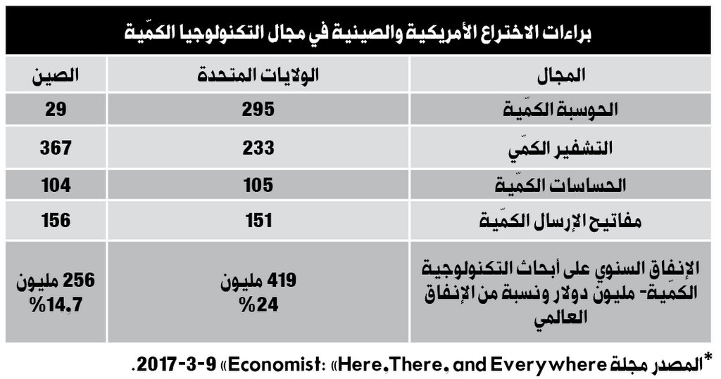 من بين العلوم والتكنولوجيات التي يجري ضمنها التنافس بين الدول الكبرى, هناك مجالات مركزية كونها تؤدي إلى إعادة هيلكة جذرية لأسس التطبيقات التكنولوجية السائدة وأساليب تصنيعها. إن عصر علم المعلوماتية والاتصالات بنسخه المعروفة حتى الآن قد انتهى بالمعنى التاريخي إذ وصلت تكنولوجياته إلى حدودها من حيث قوة وفاعلية الأداء. في المقابل، تجري نقلة جديدة تتلخص بظهور علم المعلومات الكمّي ((Quantum information science, تؤسس للدخول إلى عصر المعلوماتية الكمّية. من يحقق السبق في هذا المجال سيحتل موقع الصدارة اقتصادياً, عسكرياً وسياسياً... أما الصين فتحتل مركز الصدارة في اثنين من مكونات هذا العلم الثلاثة!